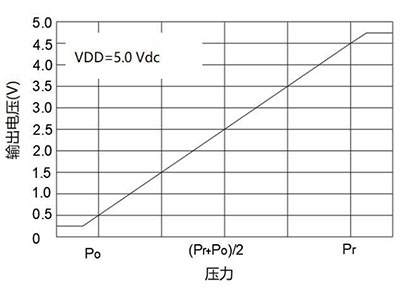 | OUT=A×P B pozornost: OUT je analogové výstupní napětí měřené ve voltech; P je hodnota tlaku, absolutní tlak, v kPa; Viz tabulka níže pro A a B. |